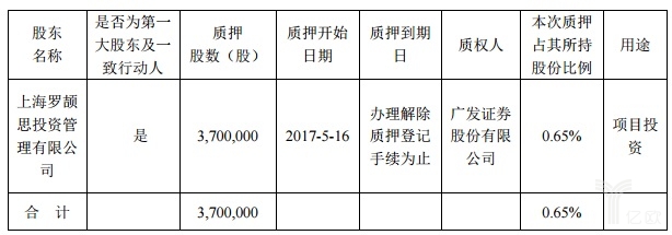 此次,羅頡思公司向廣發(fā)證券有限公司抵押370萬(wàn)股公司股份,僅占其所持股份比例的0.65%。