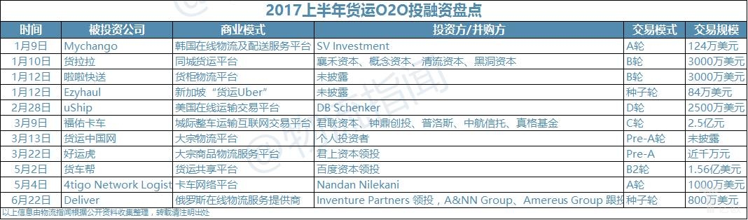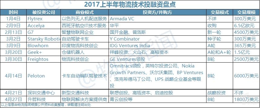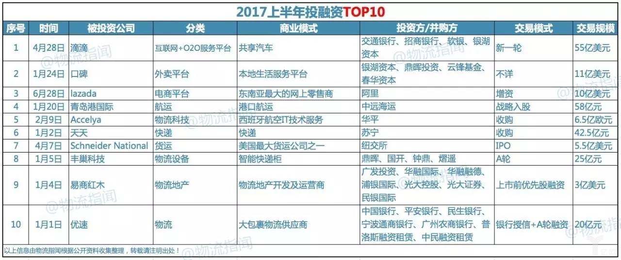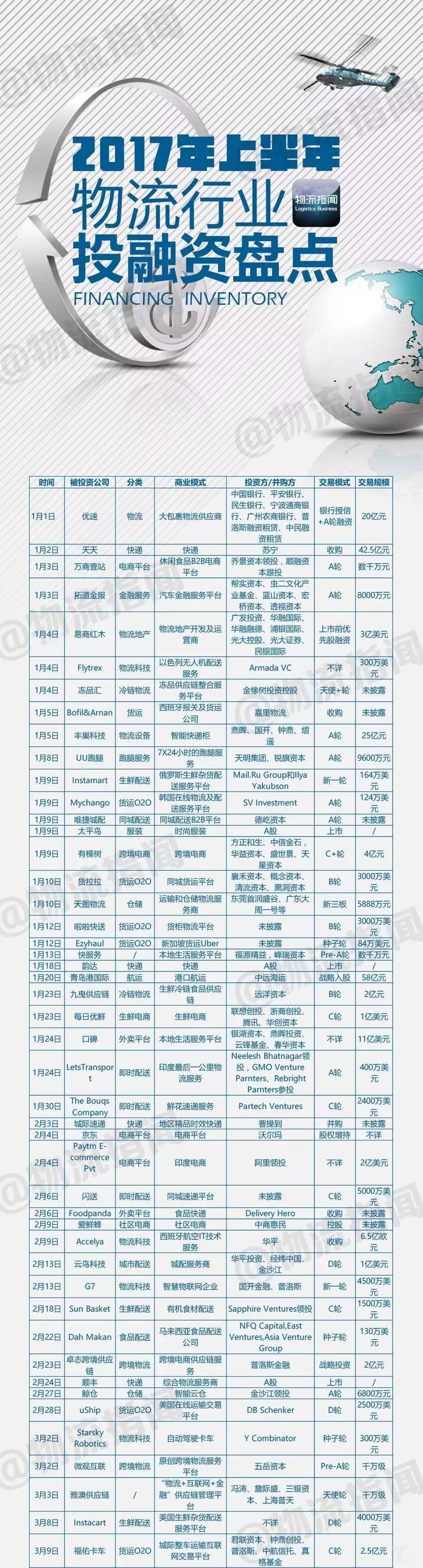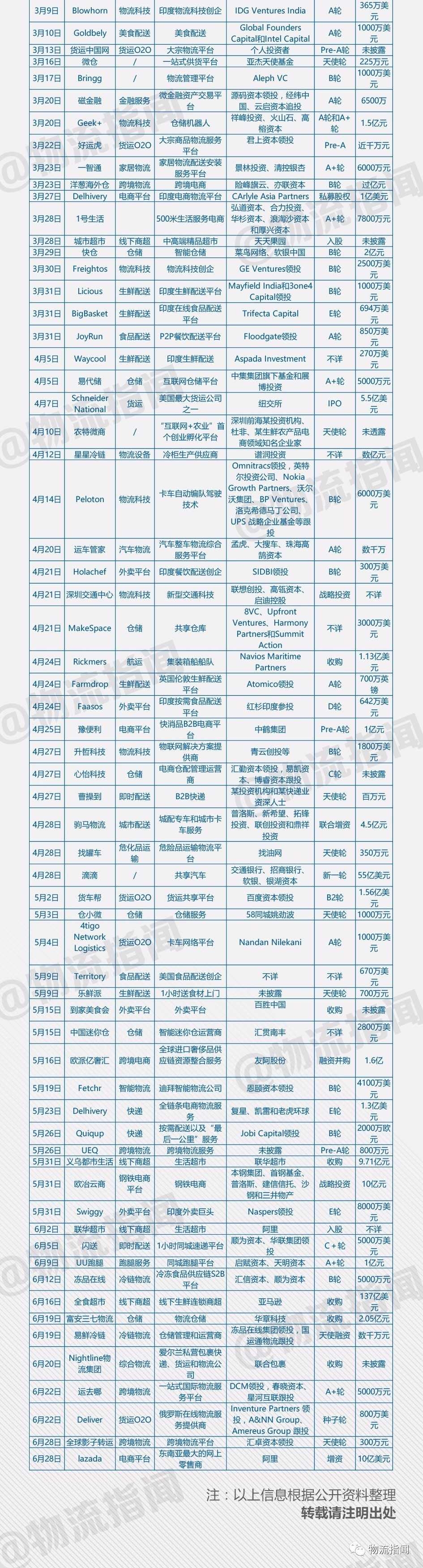 物流指聞,聚集了全行業的各種資源和行業一手信息,年中之際,將完成一系列行業盤點。今天我們全面呈現《2017年上半年物流行業投融資盤點》。