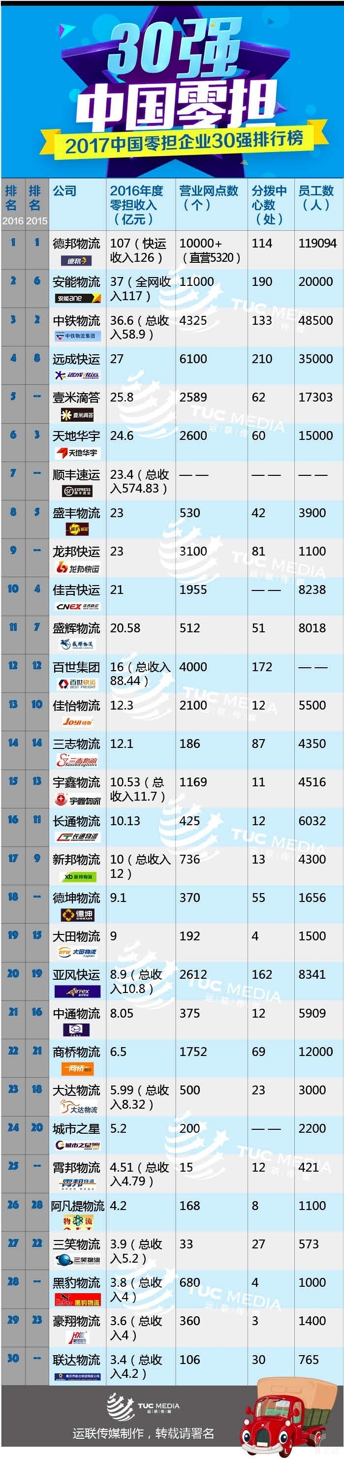 零擔30強企業,是我們這個行業的翹楚和標桿;排名的變遷與更迭,反映著行業的趨勢和未來。