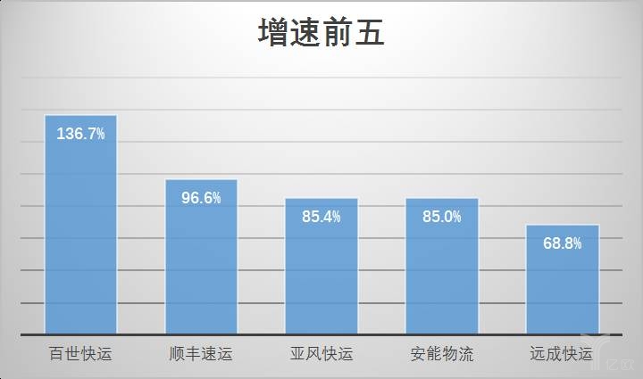 從零擔30強2016年的營收增長速度分析,百世快運以136.7%的增速居第一,順豐速運以96.6%的增速居第二,亞風快運以85.4%的增速居第三,安能以85%的增速居第四,遠成快運以68.8%的增速居第五。