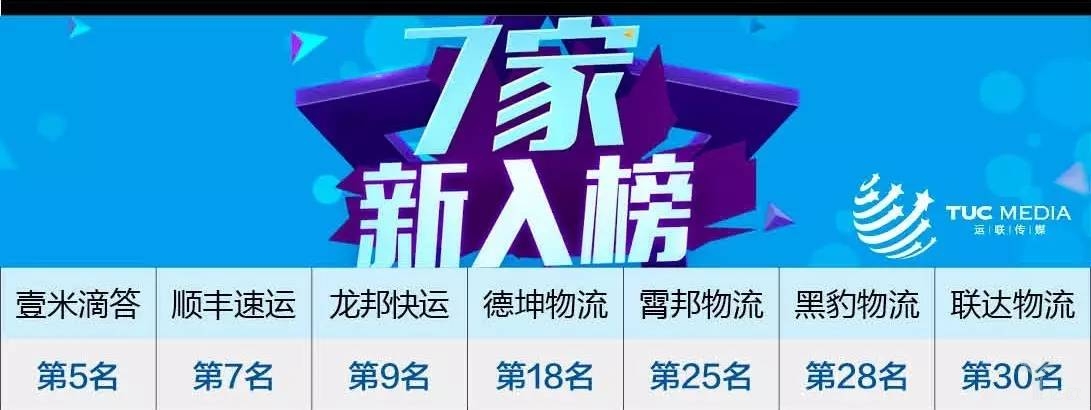 和以往的零擔30強相比,2017年有一個非常大的變化,就是新上榜企業有7家之多。分別是排名第5的壹米滴答,排名第7的順豐速運,排名第9的龍邦快運,排名第18的德坤物流,排名第25的霄邦物流,排名第28的黑豹物流,排名第30的聯達物流。