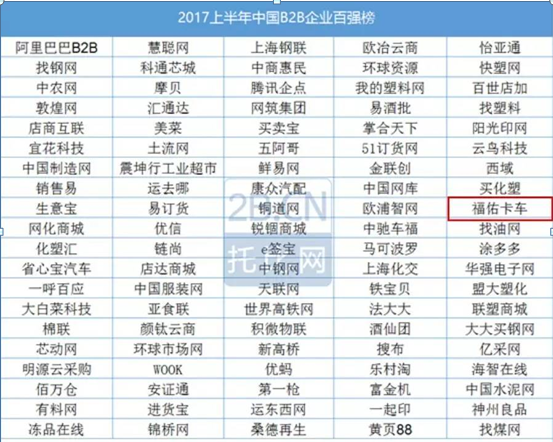 2017上半年中國B2B百強榜發布 福佑卡車排名上升幅度最大