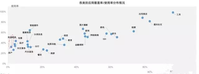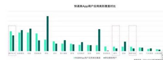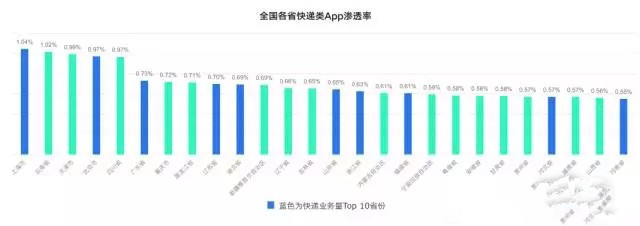 報告對包括快遞物流在內20余類APP的覆蓋率/使用率分析后發現: