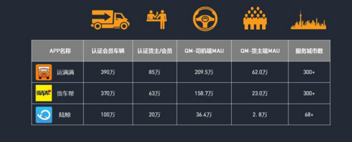 運滿滿、貨車幫、陸鯨APP用戶情況