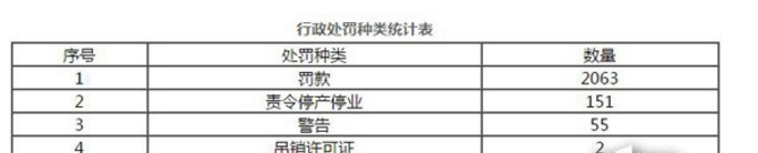 按照處罰種類統計,上半年各級郵政管理部門共作出警告55次,罰款2063次,責令停產停業151次,吊銷許可證2次,其他4次。