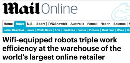 8月2日,英國《每日郵報(bào)》發(fā)表題為《裝載無線網(wǎng)絡(luò)的機(jī)器人將中國最大在線零售商倉庫的效率翻了三倍》的文章。文章介紹了日前投入使用的中國最大機(jī)器人倉庫,已有超過百臺(tái)機(jī)器人在倉庫內(nèi)運(yùn)行。