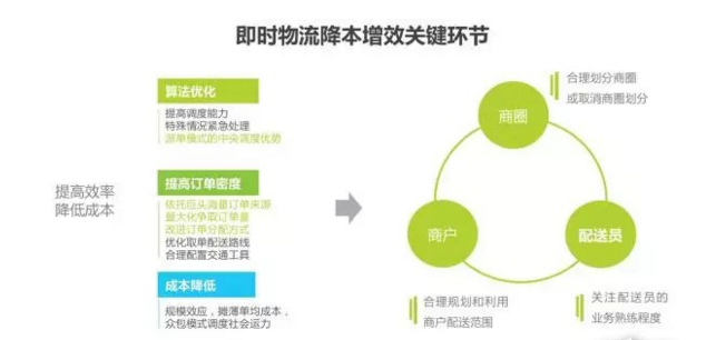 2016年,O2O平臺逐漸開始降低補貼力度,目前大部分即時物流業務收取的配送費用仍不能彌補成本,降本增效壓力突顯,一方面需要不斷提升配送速度和時效的穩定性,另一方面則需要通過提高人效來降低成本。其中,根本任務是管理好商圈、商戶和配送員。