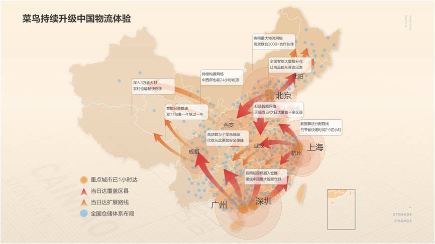 今年以來隨著阿里巴巴在新零售方面不斷落子,以菜鳥為主的智慧物流網(wǎng)絡(luò)也在不斷升級,打破傳統(tǒng)模式。比如盒馬鮮生的30分鐘送達,天貓超市在北京上海推出的1小時送達,菜鳥裹裹推出的淘寶天貓兩小時上門取退等,都在創(chuàng)造新的市場供給。