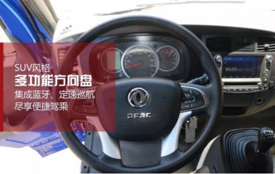 新款東風凱普特不僅是細節風格的改變,而且實用性更強。全系標配多功能方向盤,表層為仿皮材質,左側設計定速巡航控制按鍵、右側設計多媒體、藍牙電話控制按鍵。配備7寸多媒體大屏、CD機、原廠空調等功能,駕駛室內新增多處儲物空間,雙杯座、雙儲物格設計,尺寸合理,能夠滿足日常使用,便捷性和人性化程度更高。同時座椅也進行了全方位升級,調角器位置及造型升級,調節更輕便,底板由蛇形彈簧式結構升級為鋼板托底結構,座椅支持性和包裹性更好,座椅采用雙滑軌結構,固定性加強,舒適性更好,包裹感和柔軟度都有很大提升。