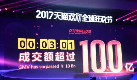 10秒鐘,就超過了16億元,3分01秒突破100億元交易額,而在去年這個數(shù)據(jù)沖破,花費(fèi)了6分58秒。