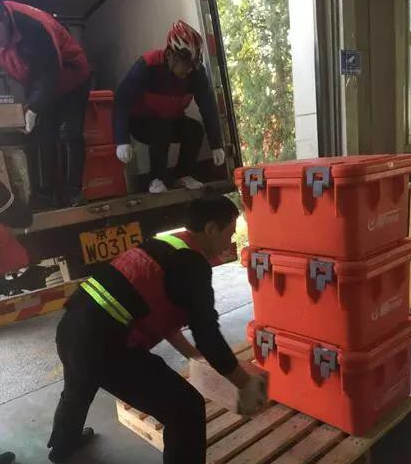 物料方面:每天使用400個專業(yè)保溫箱、一萬套餐盒。