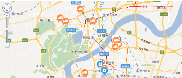 (慧聯智控系統上可以準確的顯示車輛信息及附近電站信息)