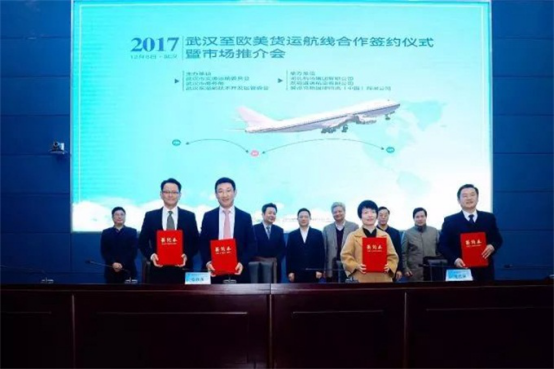 2017年12月8日,武漢至歐美貨運(yùn)航線合作簽約儀式暨市場(chǎng)推介會(huì)在武漢天河機(jī)場(chǎng)隆重召開。友和道通航空作為承辦單位參加此次會(huì)議。在湖北省政府及武漢市政府的關(guān)心和支持下,友和道通航空與武漢市交委、武漢天河機(jī)場(chǎng)公司簽訂武漢-歐洲(盧森堡)往返全貨機(jī)航線三方合作協(xié)議,同時(shí)還與中國(guó)郵政速遞物流股份有限公司湖北省分公司簽署戰(zhàn)略合作備忘錄,正式宣布開通武漢-歐洲(盧森堡)往返全貨機(jī)航線。作為首條武漢至歐洲的全貨機(jī)航線,它的開通標(biāo)志著湖北航空貨運(yùn)和友和道通航空一起邁入新的發(fā)展階段。