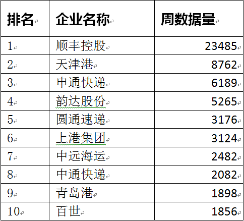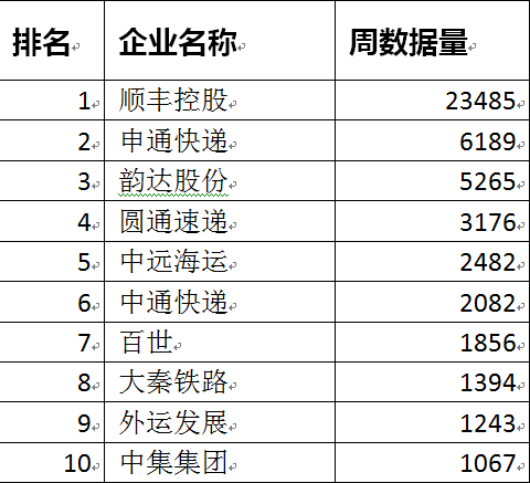 (2)12月第2周中國物流上市公司綜合類排行榜