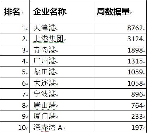 在12月第2周的中國物流上市公司港口類排行榜中,監測期最熱傳播內容為被動傳播。“12月10日,全球最大單體自動化智能碼頭和全球綜合自動化程度最高的碼頭--洋山港四期碼頭正式開港。”的消息監測期最熱,該文提及廈門港、青島港、上港集團等公司。