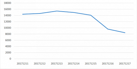 12月第2周共計監測物流上市公司數據91754條,周一至周五走勢平穩,周六、周日下滑。