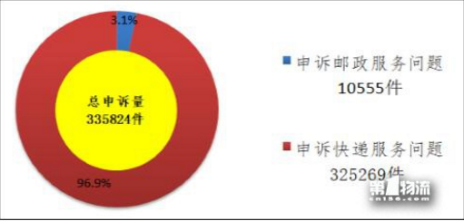 2017年11月,國(guó)家郵政局和各省(區(qū)、市)郵政管理局通過(guò)“12305”郵政行業(yè)消費(fèi)者申訴電話(huà)和申訴網(wǎng)站共受理消費(fèi)者申訴335824件。申訴中涉及郵政服務(wù)問(wèn)題的10555件,占總申訴量的3.1%;涉及快遞服務(wù)問(wèn)題的325269件,占總申訴量的96.9%。
