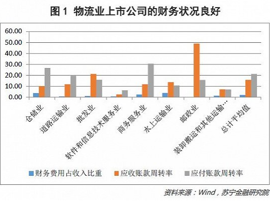 如圖1所示,物流業上市公司的財務費用占營收比重大多較低,應收賬款和應付賬款周轉速度較快。同時,由于存在較大規模的可抵押固定資產,銀行對這類企業授信的傳統渠道也較通暢。