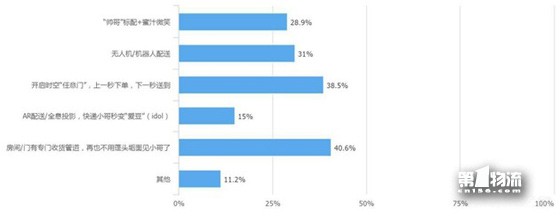 在被問及末端配送未來最期待的場景,38.5%的受訪者希望“開啟時空任意門,上一秒下單、下一秒送到”。這都顯示出消費者對時效持續提出更高要求。