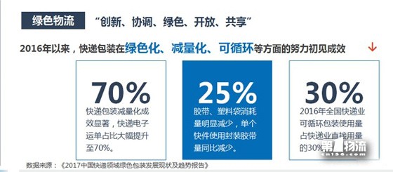 2017雙11是綠色物流的首次集中行動,代表了未來的一種必然趨勢。中國政府在“十三五”期間樹立并貫徹“創新、協調、綠色、開放、共享”的發展理念,綠色物流,已經越來越成為物流行業的共識,無論是小小的包裝耗材,還是整合全社會的平臺搭建,背后都是物流行業發展到新階段的內生需求。