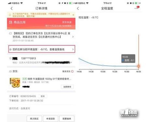 京東同時搭建了全球首個冷鏈物流全流程智能溫控體系,陸續在全國范圍內投放超過20萬個智能保溫箱,近220個城市的消費者有機會實時查看在京東上所購自營生鮮商品在倉儲、運輸、配送等各環節的溫度反饋和實時位置,實現全流程可溯源。