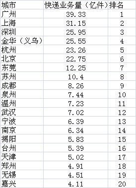 快遞業務量前20名城市
