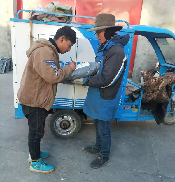他騎著一輛電動三輪車,車上裝著200多件大小不一的包裹,一天要跑四五十里路。他給老人們送過子女們在兩三千公里外網購的水果,給機關單位里的公務員送過耐克鞋,給數不清的藏民和漢族人送過電視機、自行車、化妝品和汽車配件等。