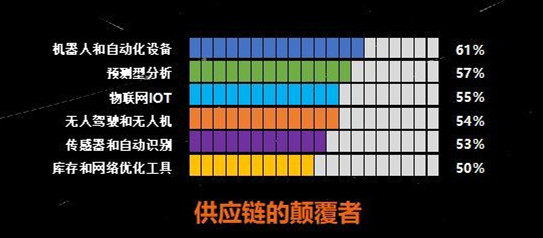 包括機器人和自動化設備、預測性分析、物聯網IOT、無人駕駛和無人機、傳感器和自動識別、庫存和網絡優化工具,數據化供應鏈已經來到我們身邊,作為物流人來講可以擁有大量的數據來使用,主要是怎樣去使用,因此我們要做連接,要把這些數據都拿到手。