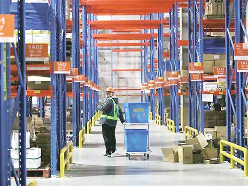 一名工作人員在中國(杭州)跨境電子商務綜合試驗區下沙園區保稅倉庫揀選商品。