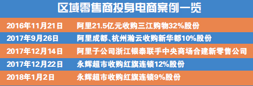 在步步高之前,浙江省最大的連鎖超市三江購物已于2016年11月就投身阿里,此后被譽為福建省最大商業企業的新華都也于去年9月被劃入阿里陣營。而成都連鎖商業巨頭紅旗連鎖,因先后兩次向永輝超市出售股份,且騰訊作為永輝超市第二大股東,因此被劃入“京騰”陣營。在區域零售商與電商巨頭雙方訴求的聯合推動下,零售業進入線上線下資源整合的加速期。