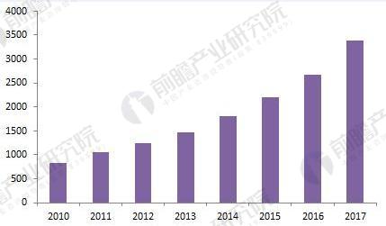圖表2:2010-2017年我國智能物流行業市場規模(單位:億元)