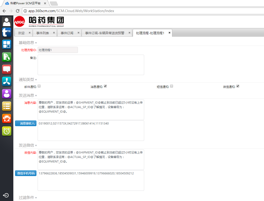 信息爆炸時代,每人每天平均要收到2條以上垃圾短信,一些重要消息很可能被遺漏。科箭的事件管理功能讓每家企業可以按照自己用戶的習慣,選擇以何種方式發送提醒與預警,如郵件、系統消息、短信、微信等。