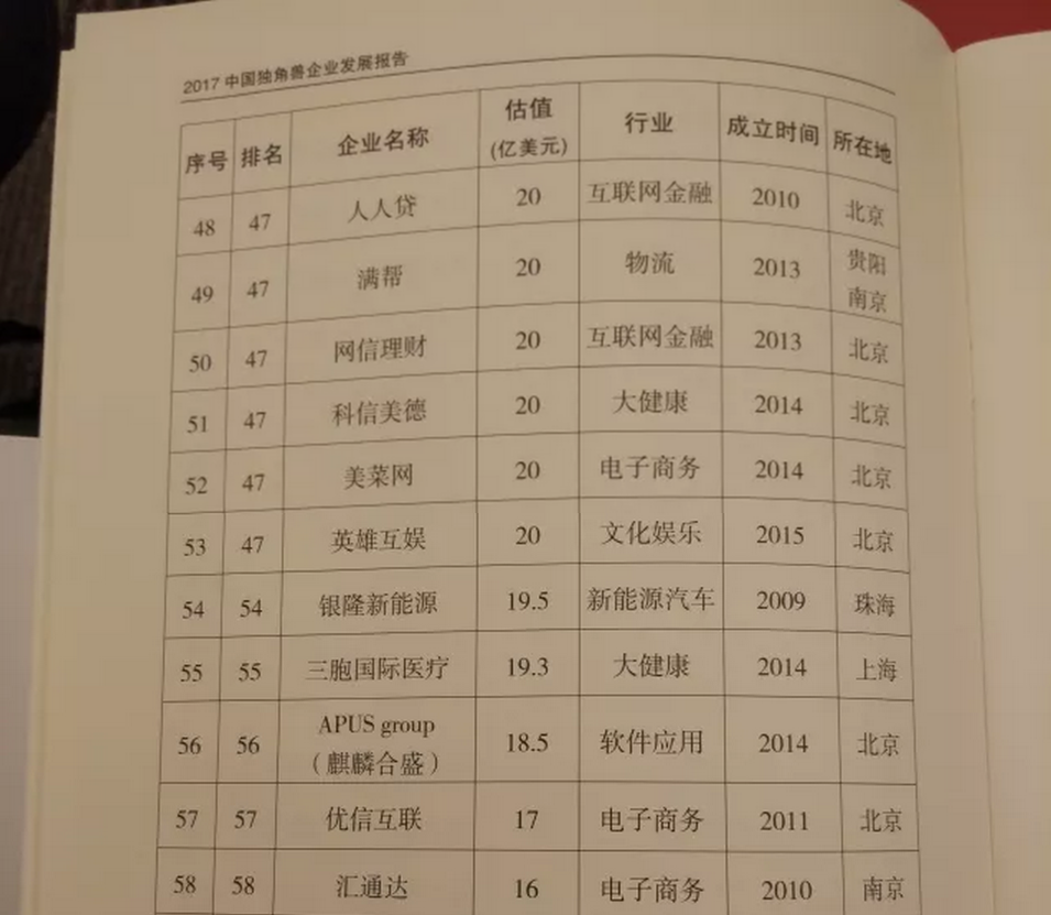 科技部發(fā)布2017獨角獸榜單 滿幫居榜前列