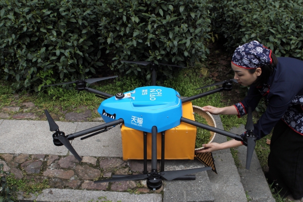 今年采茶季,菜鳥無人機組成的飛行編隊往返于獅峰山與炒茶中心之間,將新采摘下的獅峰龍井茶葉運輸下山。隨后再進行攤曬,炒制。其中獅峰龍井第一采,也就是由無人機運輸下山。“不到2分鐘就送到了。”當地茶商就表示,以前至少需要兩個多小時。