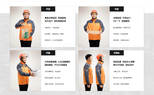 從其官網來看從UU跑腿將人們生活中復雜多樣的服務需求分為,代買商品、代送物品、代取物品和代排隊四種,且每種又分為不同的細分場景。