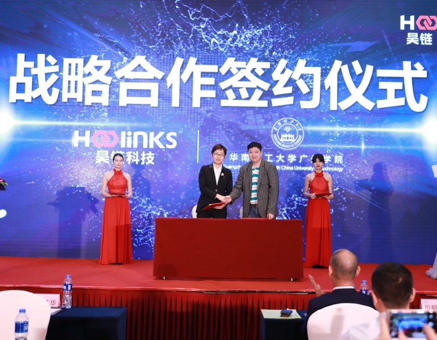 (圖二:昊鏈科技總經理林冬華(左)、華南理工大學廣州學院高級工程師鄧一星簽署AI戰略合作協議)
