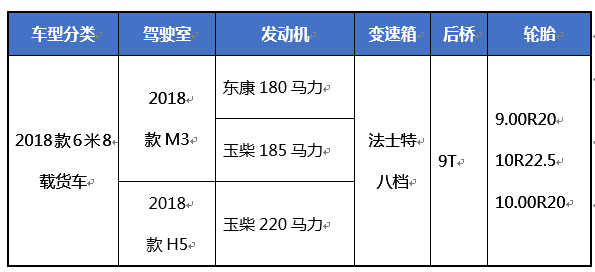 2018款乘龍單橋6米8載貨車主要配置: