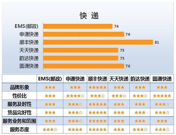 一、快遞行業主要品牌測評結果