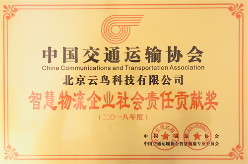 (中國交通運(yùn)輸協(xié)會(huì)為云鳥科技頒發(fā)社會(huì)責(zé)任貢獻(xiàn)獎(jiǎng))