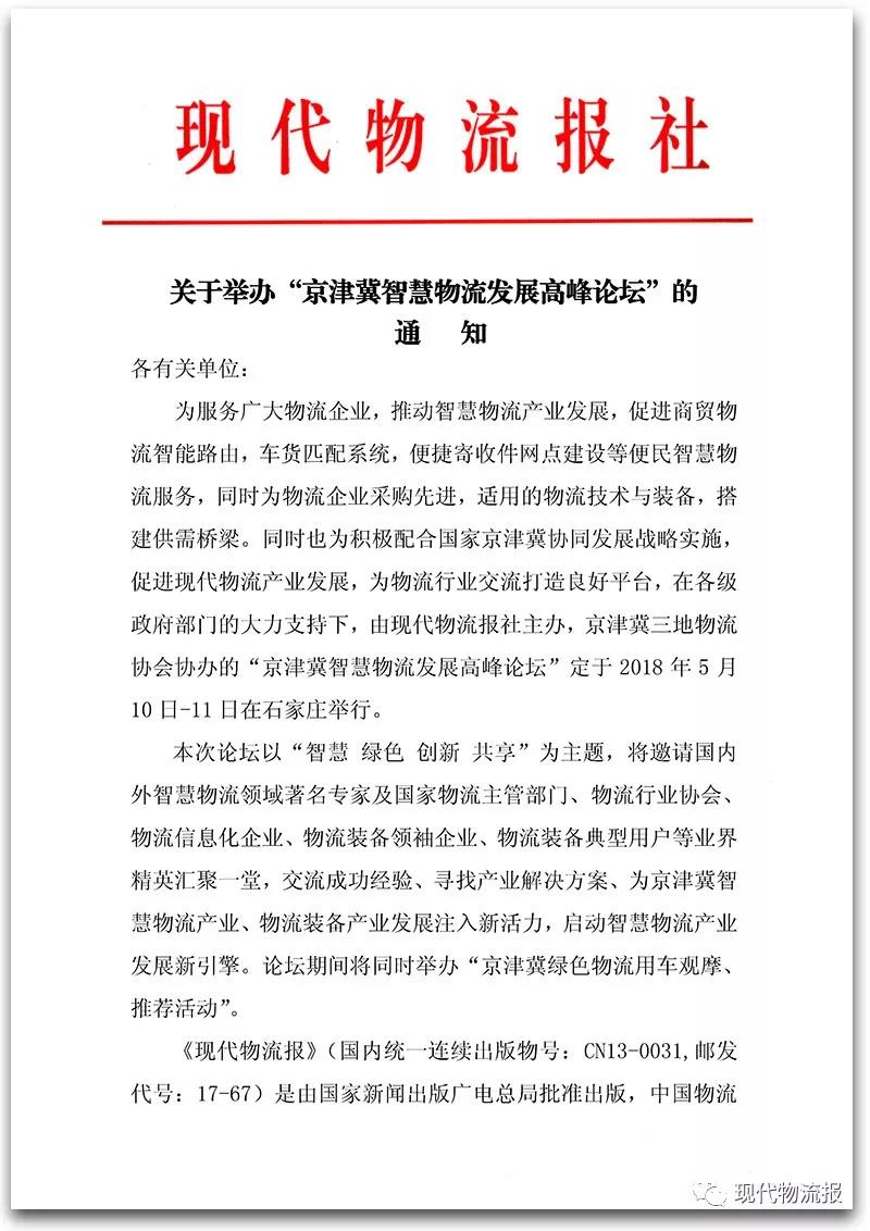 【重要通知】等您登臺,“京津冀智慧物流發展高峰論壇”來了