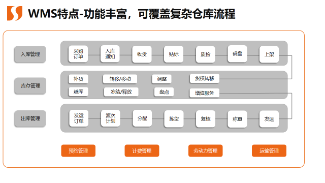 WMS云是基于行業(yè)沉淀設計的專業(yè)SaaS倉儲管理產(chǎn)品。針對制造、零售、物流及電商等行業(yè),WMS云流程可配置,場景化設計,可快速上線,投資回報快。