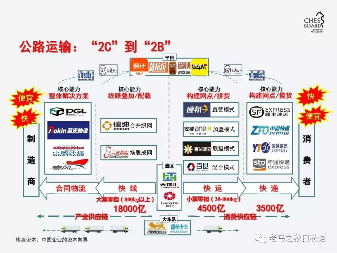 引擎之一是中國公路運(yùn)輸?shù)母窬肿兓?ldquo;戰(zhàn)火”從原來的2C燒向更廣闊的2B,“通道+樞紐+網(wǎng)絡(luò)+平臺”的基礎(chǔ)設(shè)施布局建設(shè)如火如荼。