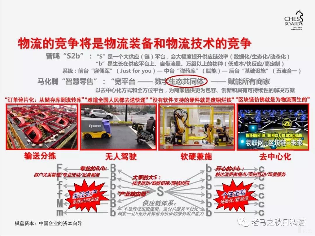 在“湖畔大學(xué)”教育長曾鳴所描繪的“S2b”生態(tài)里,包含著點(diǎn)、線、面、體:“點(diǎn)”是生態(tài)里提供各種專業(yè)服務(wù)和價值的“專業(yè)的小b”,專注并追求極致,我稱他們?yōu)?ldquo;武器制造商”;“線”是生態(tài)里自帶流量服務(wù)流量的“快樂的小b”,貼身并實(shí)時互動,我視他們?yōu)?ldquo;一線007”;“面”是核心的廣泛連接“點(diǎn)”“線”的供應(yīng)鏈平臺(Supply chain platform),數(shù)據(jù)驅(qū)動且網(wǎng)絡(luò)協(xié)同,我把它比作“彈藥庫”;“體”是上述相關(guān)要素平臺構(gòu)建起來的生態(tài)系統(tǒng),有別于以空間三維界定的傳統(tǒng)經(jīng)濟(jì)體。這種數(shù)字生態(tài)“新經(jīng)濟(jì)體”的底層“面”,往往就是一個物流平臺,就連馬云也不得不承認(rèn):“離開了物流,很多東西就變成了一種幻想,而不是理想,更不存在著夢想”。