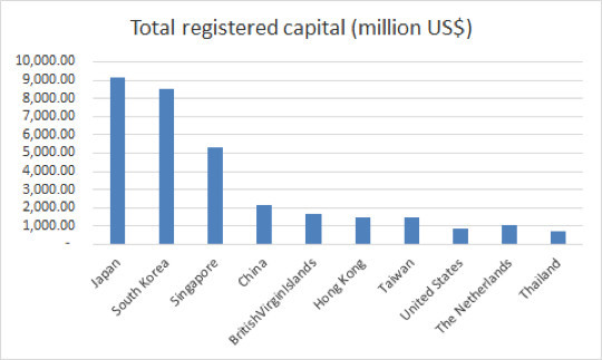 2017年,前10名的國家占外商投資總額(359億美元)的 90%。(來源:The Foreign Investment Agency)