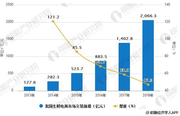 2013-2018年我國生鮮電商市場交易規(guī)模及增長情況