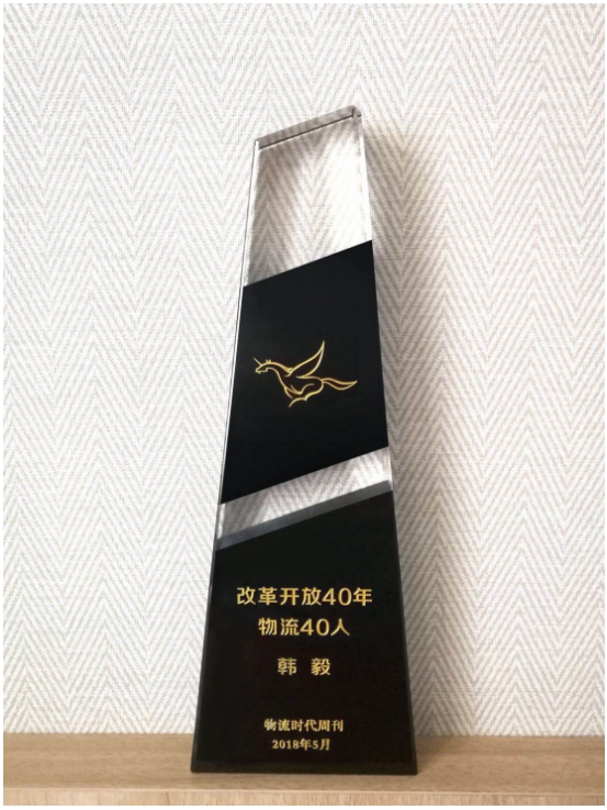 (韓毅獲頒“改革開放40年物流40年”獎杯)
