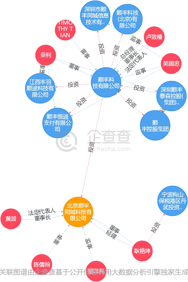 據企查查信息顯示,北京順豐同城科技有限公司已于2017年12月15日成立,順豐科技有限公司100%持股,耿艷坤為北京順豐同城科技董事、經理。且還有一個深圳市順豐同城科技有限公司,據億歐了解,該公司成立于2016年3月9日。2017年2月4日,深圳市順豐益眾信息技術有限公司變更為深圳市順豐同城信息技術有限公司。
