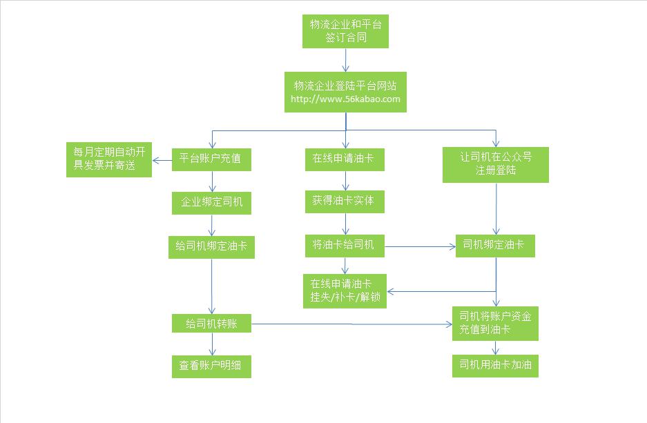 比如我們合作的上海能運物流公司,物流公司與56卡包簽訂協議后,56卡包會根據客戶平時所需油卡及使用情況,為其選擇性辦理藍卡或者柴油聯名卡,物流公司拿到油卡后,通過56卡包后臺開始給公司名下司機綁定油卡,分配油費。司機拿到油卡后,在“56卡包”微信公眾號注冊綁定,即可查看公司分配油費,56卡包里的油費,可以自行轉到油卡,即可持卡加油;也可直接去56卡包合作加油站掃碼付油費,同樣是中石化柴油,油價更便宜。