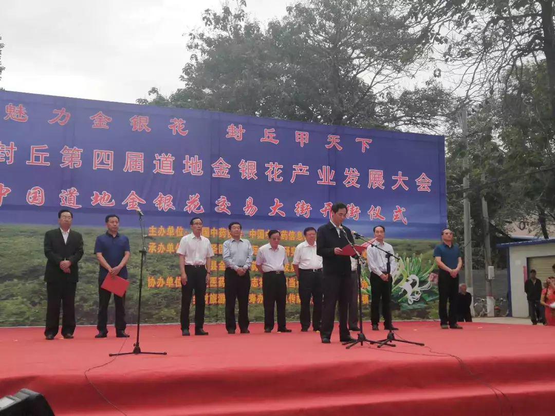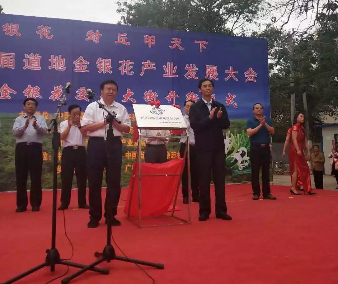 中國中醫藥信息研究會會長、原國家中醫藥管理局副局長吳剛教授和封丘縣人民政府縣長王獻臣共同為中國道地金銀花交易大街揭牌。