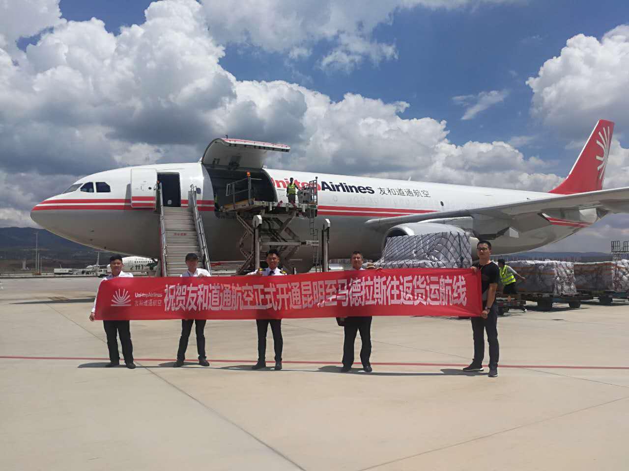 2017年6月14日,友和道通航空正式開(kāi)通昆明至金奈(馬德拉斯)國(guó)際貨運(yùn)航線,開(kāi)航即達(dá)到每周5班的高頻次。昆明至金奈航線,采用A300全貨機(jī)執(zhí)飛,載貨量為45噸,開(kāi)航一年以來(lái)平均滿載率達(dá)90%以上,為滿足貨量不斷增長(zhǎng)的需求已增至每周6班,高標(biāo)準(zhǔn)滿足客戶的出貨需求。